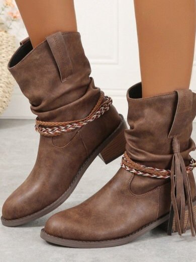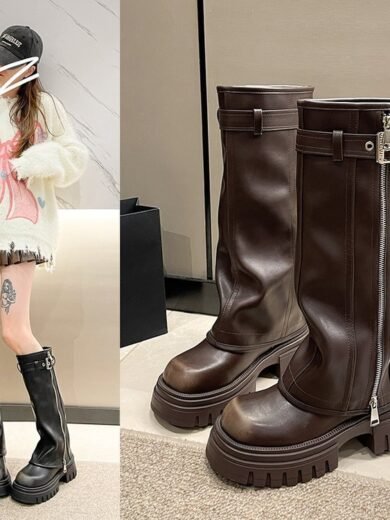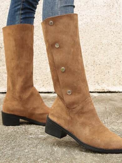 Versatile Riding European And American Trendy Unique Mid-calf Boots