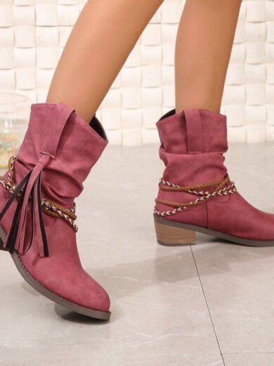 Women's Autumn And Winter Pleated Tassel High Heel Mid-calf Length Loose Socks Boots